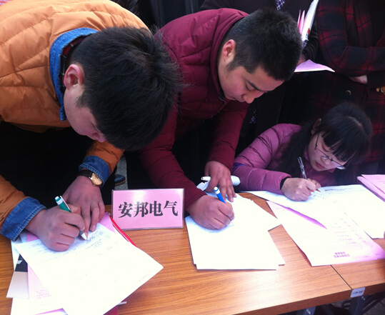 2016年2月18日上午,安邦集團(tuán)參加了由市人力資源和社會(huì)保障局主辦的天長(zhǎng)市2016年”春風(fēng)行動(dòng)”暨新春企業(yè)招聘會(huì)。招聘會(huì)現(xiàn)場(chǎng),安邦集團(tuán)董事長(zhǎng)李貽連及副總裁卜基峰親臨招聘會(huì)現(xiàn)場(chǎng),為應(yīng)聘者簡(jiǎn)單的介紹了企業(yè)的發(fā)展概況、企業(yè)文化、提供的崗位以及薪資待遇等等。