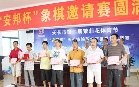 7月28日、29日,由天長(zhǎng)市體育總會(huì)、天長(zhǎng)市棋牌協(xié)會(huì)主辦,安邦集團(tuán)獨(dú)家贊助承辦的天長(zhǎng)市第二屆茉莉花體育節(jié)暨“安邦杯”天長(zhǎng)市皖蘇六市縣象棋邀請(qǐng)賽在安邦集團(tuán)會(huì)議廳隆重舉行。