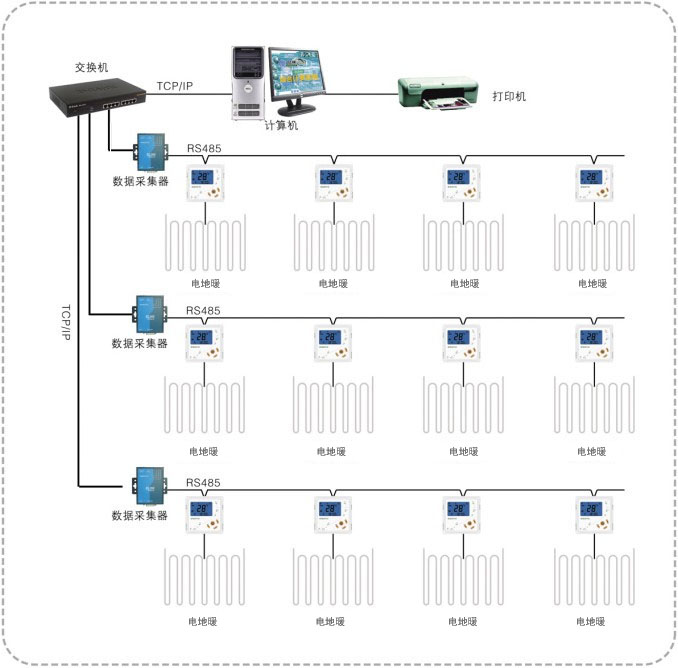 一般針對公共型電采暖項目時,還需要用到電采暖控制系統(tǒng)(或者稱為:電地暖群組計算機控制系統(tǒng)、電地暖智能網(wǎng)絡控制系統(tǒng)、電地暖集中控制系統(tǒng))。